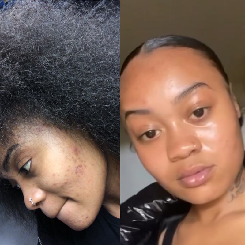 T. found my Instagram page back in 2021 when she was experiencing acne breakouts and dark spots on her forehead “like crazy” She used to have very clear skin but when the breakouts started she felt sick and ugly.