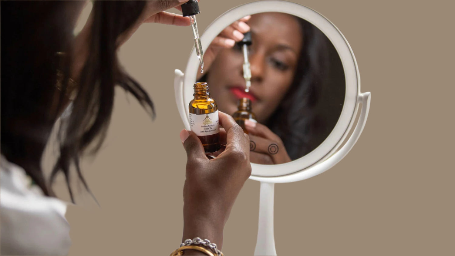 Our Green Tea Dark Spot Corrector is an oil-based serum that fades discoloration, hyperpigmentation, acne scarring and age spots. The corrector also reduces redness and inflammation in the skin.